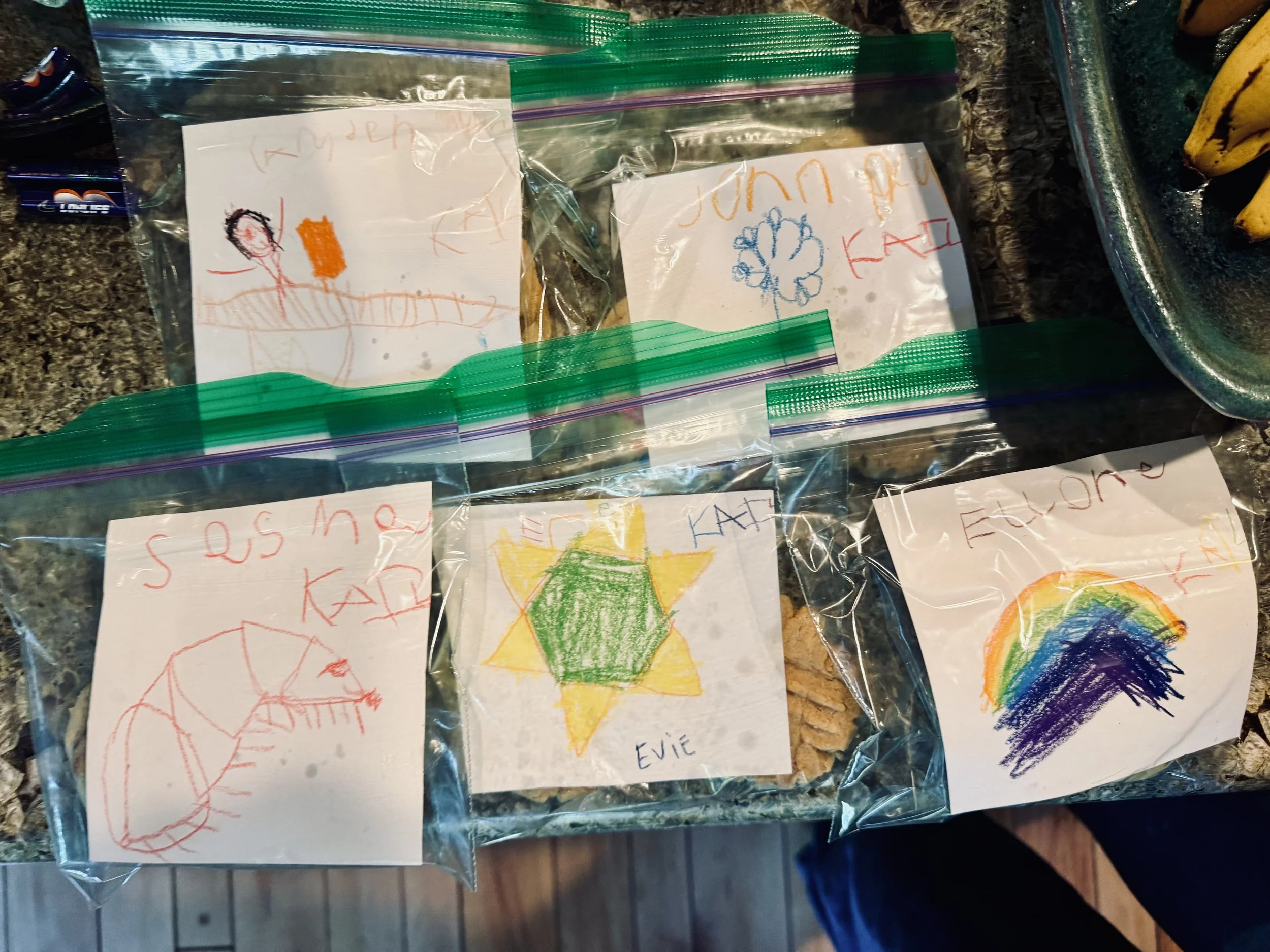 He made little drawings for a few of the lifeguards. We put their names and desired cookies in a bag and delivered them. We made some lifeguards happy.